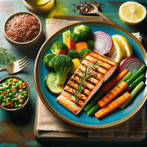 - 구운 연어와 채소: 연어를 구워서 브로콜리, 아스파라거스 등의 채소와 함께 섭취합니다.