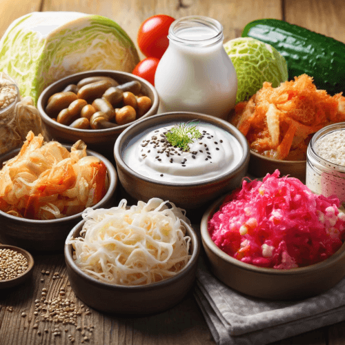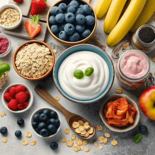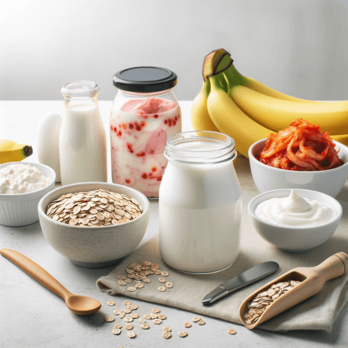 프로바이오틱스는 유익한 살아있는 미생물로, 주로 유산균과 비피도박테리움이 포함됩니다. 이들은 장내 유익균을 증가시켜 소화와 면역 기능을 개선하는 데 도움을 줍니다. 프로바이오틱스는 주로 요거트, 케피어, 김치, 사우어크라우트, 템페, 미소, 피클 등 발효 식품에서 발견됩니다 (EverydayHealth.com) (Preventive Med Daily).